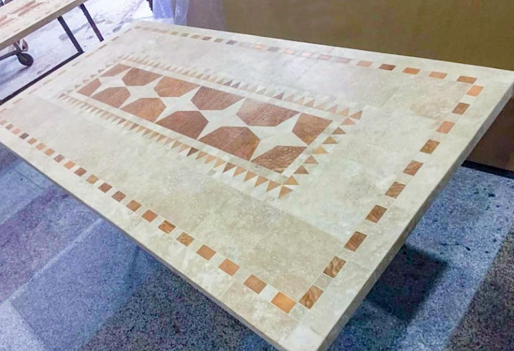 - The tabletop requires minimal maintenance; periodic sealing for the stone is recommended to protect against staining and etching.